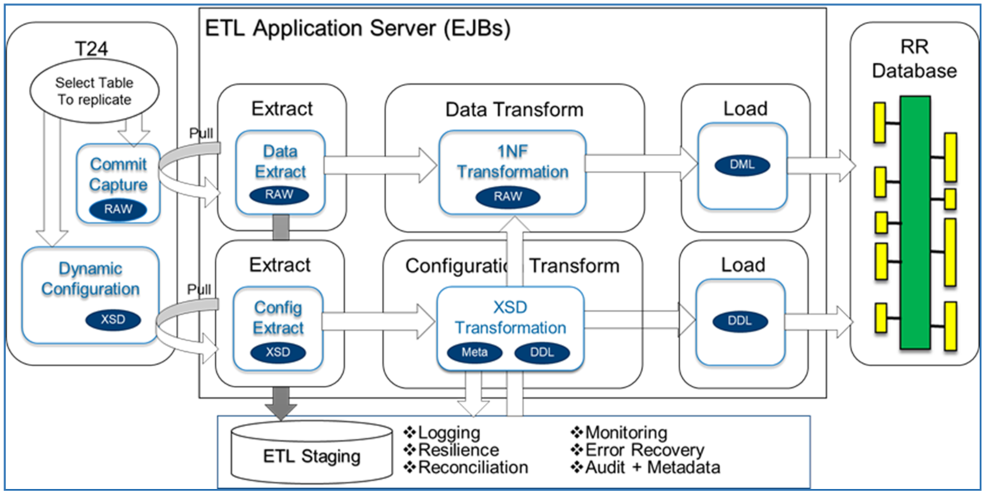 At the same time, the data events are logged into ETL staging tables for logging, resilience, reconciliation and monitoring purposes.