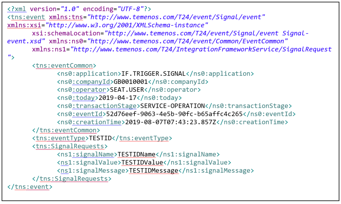 This topic shows a sample XML file that is used during processing of signal events.