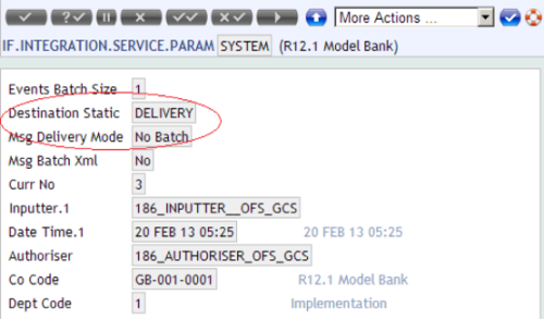 - Deliver each event as one JMS message within a transaction through the DeliveryMDB, which is configured to handle messages for the activation string 'DELIVERY'. Each JMS message is expected to have four header properties, such as application, transactionStage, operator, and staticPriority for which the values are identified from the fields of same name in the event XML.NOTE:
