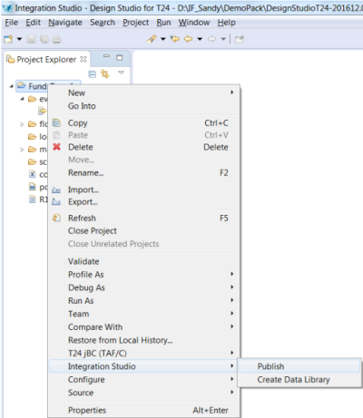 - In the new context menu, click Integration Studio > Publish to publish the selected events.