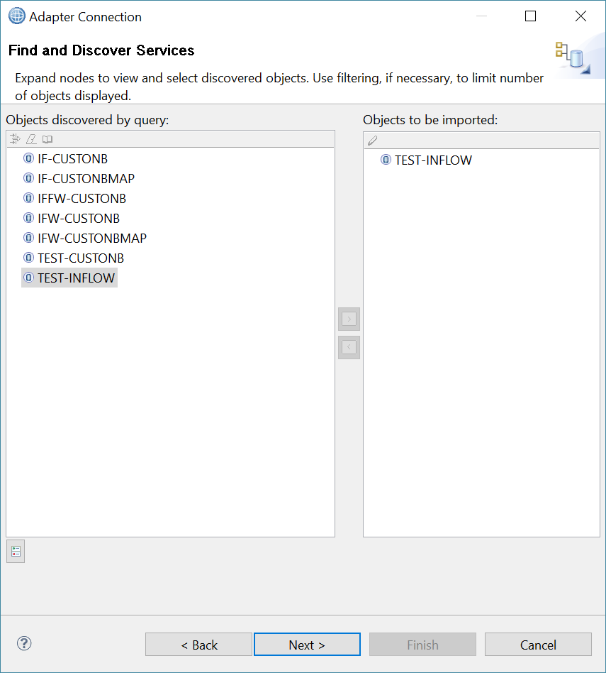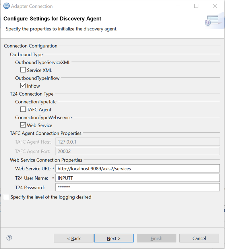 - While performing metadata discovery, select the outbound adapter. The Configure Settings for Discovery Agent wizard opens.