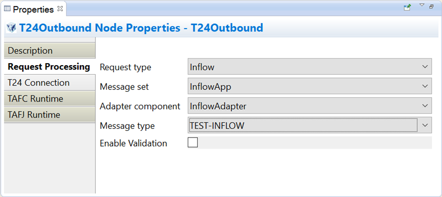 You can execute an Inflow request using the T24 (Temenos Transact) Custom Outbound Adapter for IIB. This topic shows how to configure T24 Custom Outbound Adapter for IIB with Inflow.