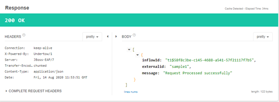 After you submit the above sample Inflow request, you get the response below.