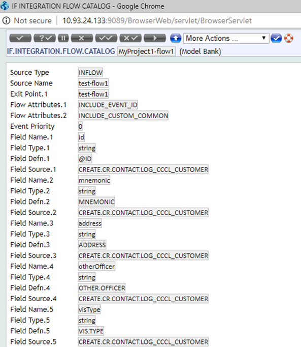 In IF.INTEGRATION.FLOW.CATALOG verify the schema and record.