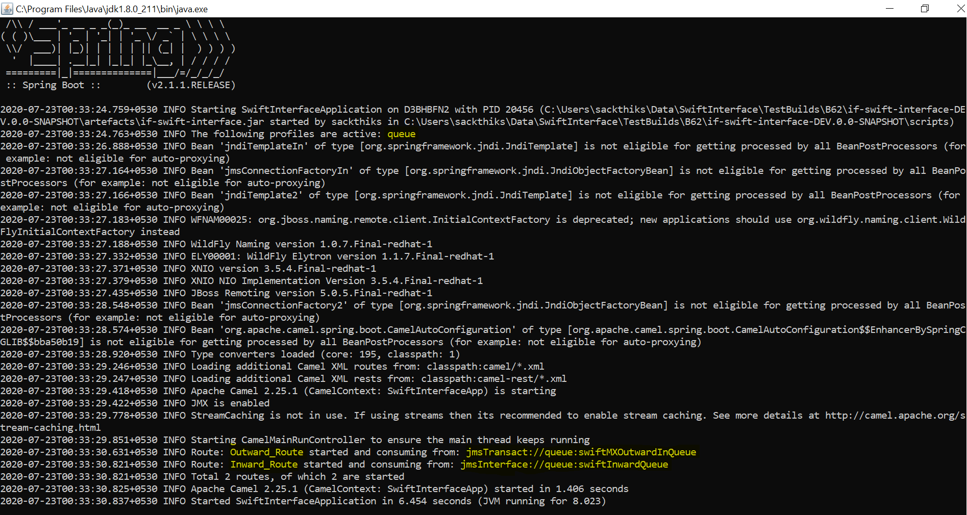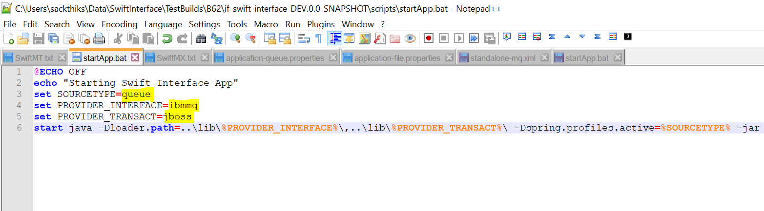 - Set PROVIDER_INTERFACE to ibmmq (or other MQ type where swift interface queues are configured)