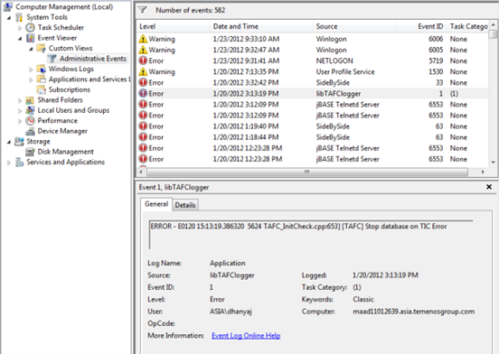 - EventViewer window