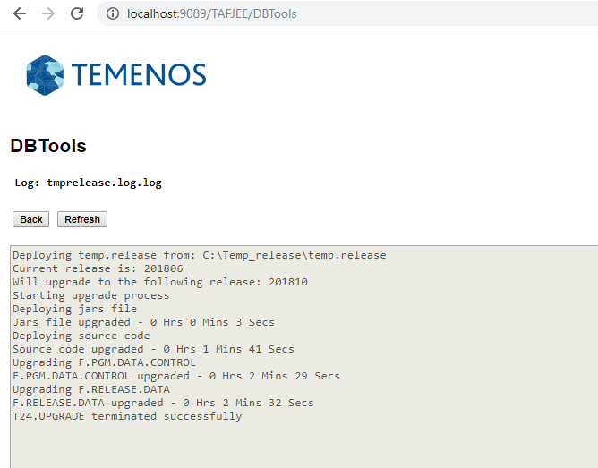 - tmprelease.log - The name of the log file to be generated in TAFJ_HOME/log folder.