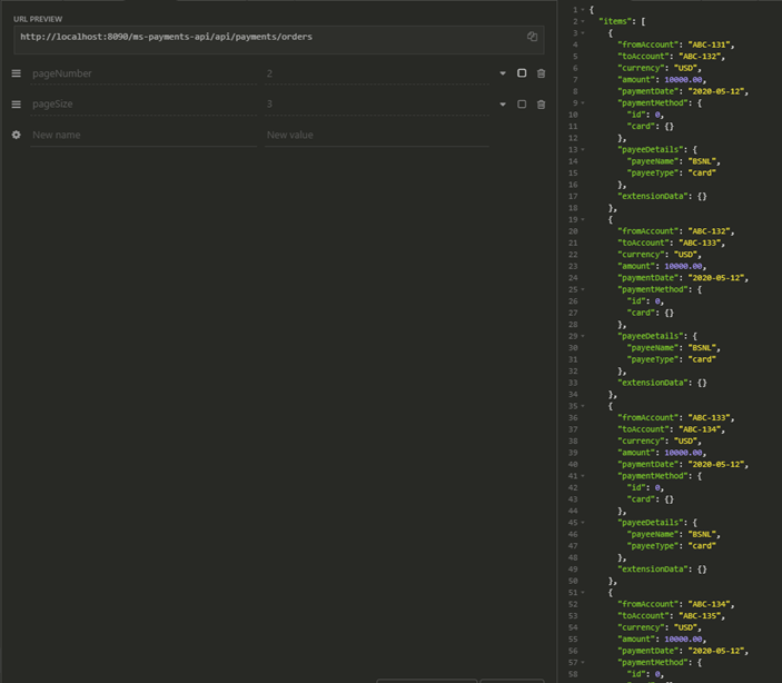 This process requires two parameters, that is, pageNumber and pageSize in the Swagger.